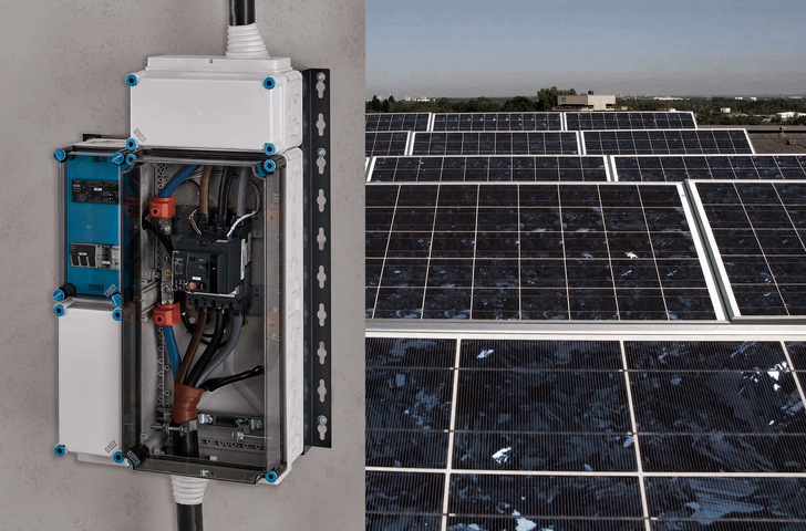 The solutions already take into account the thermal problem with the simultaneity factor 1. Hensel has already done all the planning and thinking for the electrical professional, taking into account the total output of the system including planning details. Seven new inverter manifolds are actually already assembled and wired - they are delivered ready for connection.
