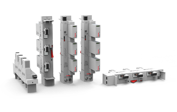 The compact Protec 60 is simply plugged onto the busbar and connected via plug & play. This reduces the installation time from several minutes to seconds. It is suitable for TN-C, TT and TN-S network systems. Thanks to their compact design, the components also significantly reduce the space required in the switch cabinet.