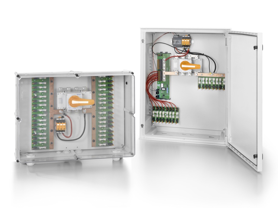 Device connection boxes structure PV systems into different levels and bundle the power of individual PV strings. For this function, Weidmüller is offering the new PV smart combiner boxes which are designed for photovoltaic systems of 1.000 or 1.500 volts DC.
