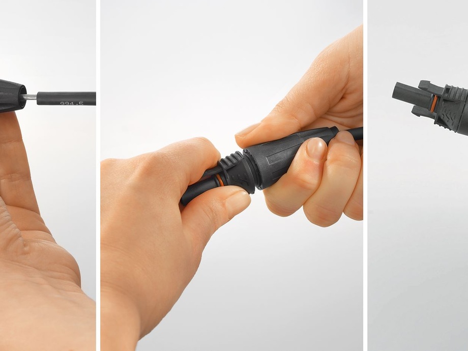 The plug-in connector complies with the IEC 62582 standard and is TÜV-approved. The popular WM4 C with crimp contact can also be used with ease in 1,500 Volt DC photovoltaic systems.