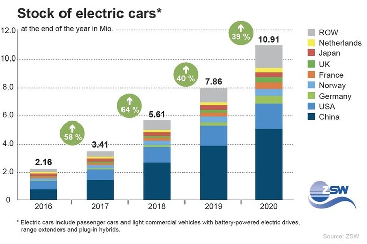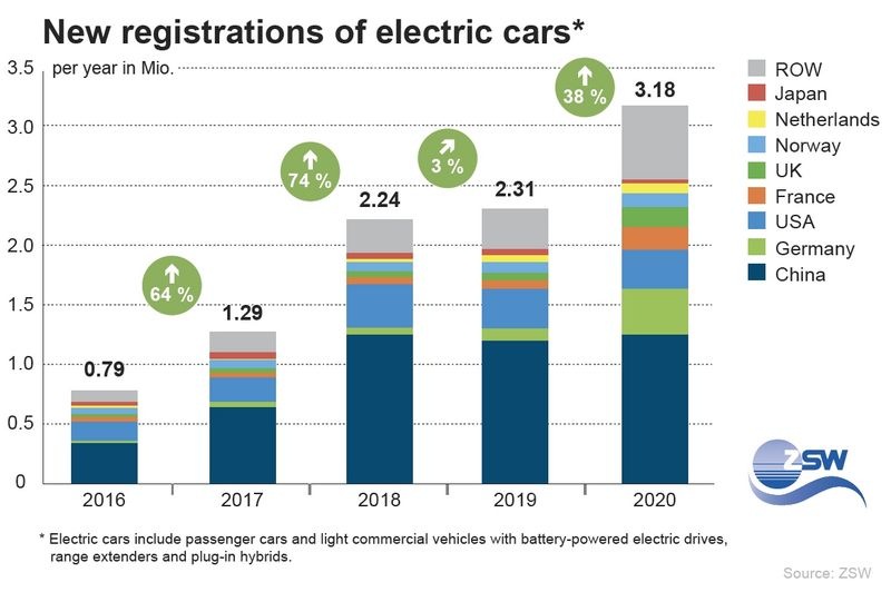 “The e-vehicle market is developing very auspiciously in many countries, particularly in the European Union," says Prof. Dr. Frithjof Staiß, Managing Director of the ZSW. “That said, this positive trend is also attributable to higher subsidies for electric vehicles as part of the coronavirus stimulus packages and other measures such as Germany’s reduced value-added tax. To achieve the German government’s goal of putting seven to ten million electric cars on the road by 2030 in an efficient way, these subsidized stimuli will have to gradually transition to market-driven growth. That will take around one million newly registered electric vehicles a year on average. The new EU climate action goal – which we can expect to be even more ambitious – is likely to require a far larger share of e-cars than previously targeted. That’s why last year’s success is just a start.”