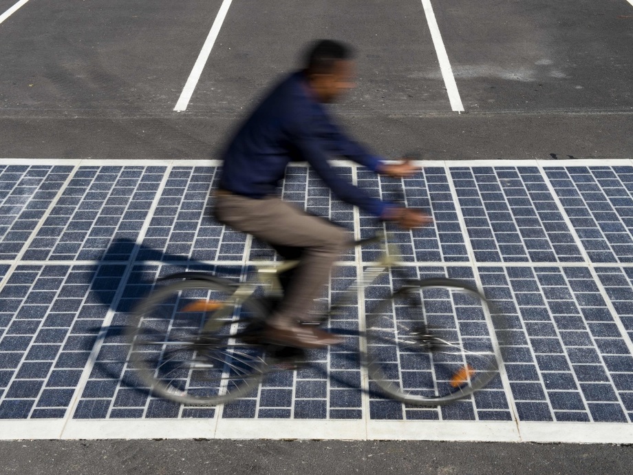 5 years of research undertaken by Colas, experts in transport infrastructure, and the INES (French National Institute for Solar Energy) went into developing this patented French innovation. The result: a highly effective combination of road construction and photovoltaic techniques providing renewable energy while allowing all types of traffic called Wattway. The module plates are seven millimeters thick and are made of polycrystalline silicon, with an edge length of 15 Centimeters. According to the French Government, the project is to be financed by a higher gasoline tax.