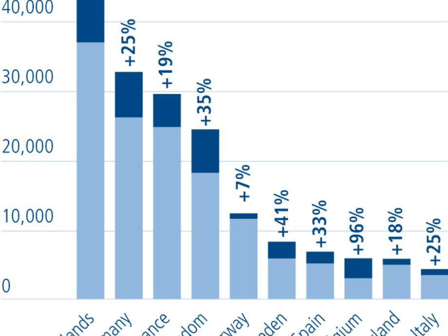 In 2017, there were only three million electric cars registered worldwide, which meant they accounted for just 0.23 per cent of the total number of vehicles across all drive systems. This number has since jumped significantly, as by the end of 2018, considerably more than five million electric cars were already on the road, which marks an increase of 63 per cent compared to 2017. While Germany is the leading European country in terms of the number of newly registered electric vehicles, Norway stands out for having the highest market share. Here, the proportion of electric cars among all newly registered vehicles grew from 49.1 per cent in 2018 to an impressive 55.9 per cent in 2019. As reported in a recent study by the Center of Automotive Management (CAM), electric vehicles already make up 15 per cent of vehicles in the Netherlands as well. With 109,000 newly registered electric vehicles in 2019, Germany now ranks as the third-largest electric car market in the world. Electric vehicles have become more widespread in the country and account for 3 per cent of all new vehicle registrations, with purely electric cars making up 58 per cent of this number.