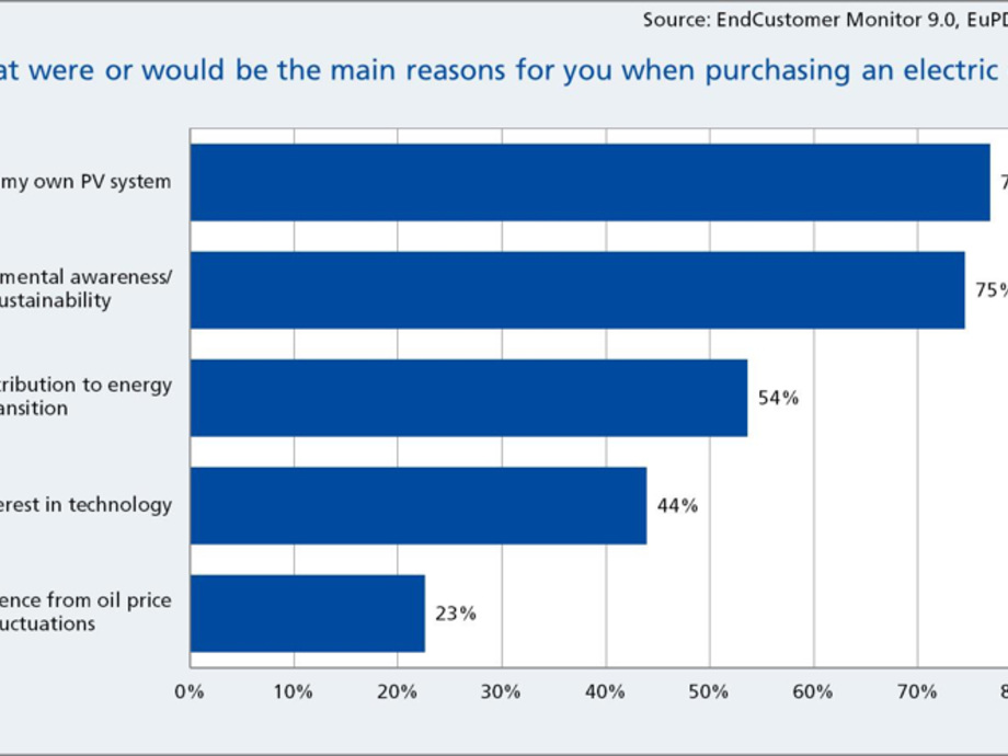 This logical correlation between inexpensive solar electricity and electric mobility becomes particularly apparent when it comes to the purchase of an electric car. As the EndcustomerMonitor 9.0 shows, being able to charge from an already existing solar PV system is the main reason to purchase an electric car. Environmental issues or sustainability are also highly relevant for residential end customers. Incentives or funding schemes, such as tax exemptions or buyer’s premium for electric cars, are less interesting.