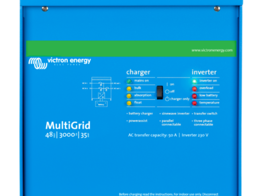 The Multi Plus from Victron Energy also is the industry standard in on-grid and off-grid energy storage systems and is approved for use in energy storage and self-consumption systems in the UK (G83/2 and G59-3-1 standards). Several hardware and firmware modifications were needed to qualify for VDE-AR-N 4105 and other country specific energy storage related standards.