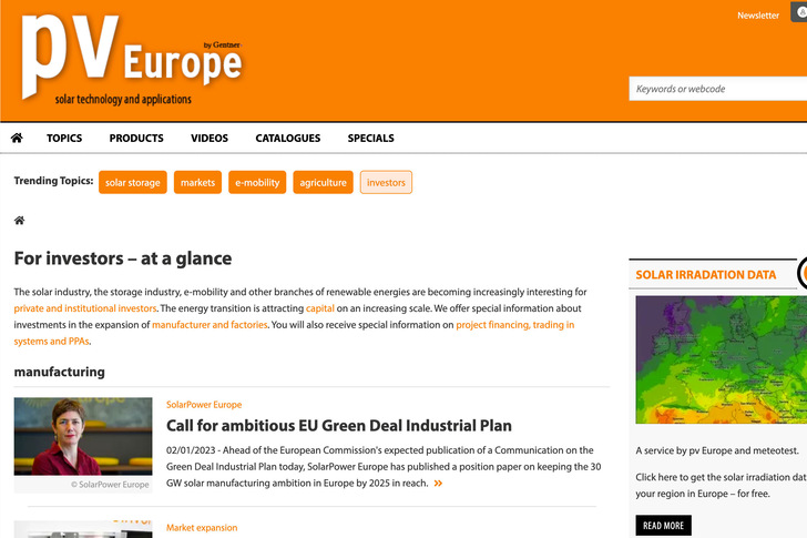 The energy transition in Europe is attracting capital on a growing scale. From now on, we offer specialised information on investments in the expansion of facilities and factories. In addition, you will receive extensive specialised information on project financing, trading in assets and PPAs.