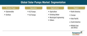 A solar pump is a major solar equipment product. It consists of a pump and a PV panel that has semiconductors. When this panel is exposed to sunlight, current gets generated and it helps pump water. Solar pumps have a wide range of applications, from household to agriculture and irrigation. The solar pumps market is anticipated to grow at a rapid pace during the forecast period, due to an increase in agricultural and irrigation activities, mainly in developing countries in Asia Pacific and the Middle East & Africa.