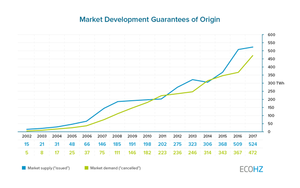 "Both available supply and market demand continue to grow, as we experience an increasingly healthy and robust market,” says Lindberg. Comparing year-to-date (YTD) supply and demand of Guarantees of Origin (GOs) for 2018 and 2017 show that supply is up by 45 TWh, while demand is up by 34 TWh.