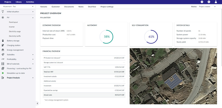 This ultimately makes the software an efficient tool for the design up to the bill of materials and the offer (cost calculation), which integrates additional functionalities for customer management. The solution supports the installer in showing his customer the opportunities of sector coupling at the building (electricity-heat-mobility).