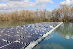Germany’s largest photovoltaic plant on an artificial lake is currently being built on a flooded gravel pit in the municipality of Renchen. (Baden-Württemberg). Only two percent of the lake area is covered by the modules yet the 750 kW plant delivers around 800,000 kilowatt hours of green electricity per year.