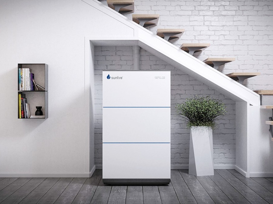 The Sunfire-Home heating unit supplies electricity and heat for residential buildings thanks to efficient combined heat and power generation. It is based on an innovative solid oxide fuel cell or SOFC. The small CHP systems are used in single-family homes and apartment buildings, both in new-build and existing buildings. The system can be run on natural gas or liquid gas and can be combined with commercially available building technology, such as battery storage, solar systems and heat pumps. The Sunfire-Home system thus increases the degree of self-sufficiency and reduces energy costs in the long term.