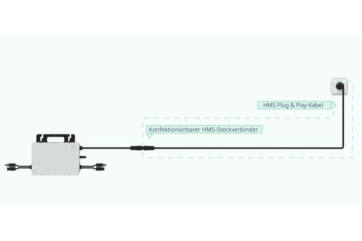 Two separate input channels enable the connection of two solar modules to the inverters. In combination with the HMS connector and the Plug & Play cable (with integrated Schuko plug), the micro inverter is plugged directly into the mains socket. This eliminates the need for complex wiring and reduces the effort required to connect the photovoltaic system. This simplifies installation enormously. (mfo)