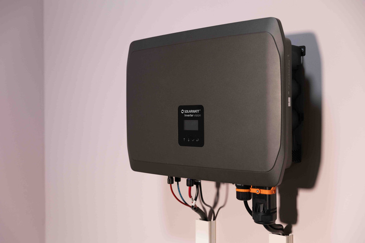 The Vision One single-phase hybrid inverter from Solarwatt is suitable for smaller solar systems with an output of three to six kilowatts. The three-phase model is designed for larger solar systems from five to 15 kilowatts. Both devices can also be oversized by up to 200 per cent. This means that the two inverters can absorb a maximum input power of up to twice the AC output power, as the profit is fed directly into the battery.