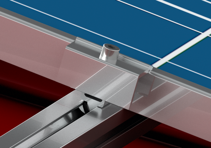 Due to the standardised middle and end clamps, Altec further simplifies the installation of solar systems, as they are only clicked into the profile. Once this is done, the module is simply pushed in. A rubber ring on the clamping block serves as an installation aid so that the clamp does not fall over during installation.