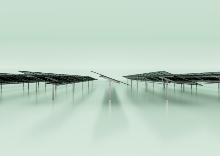 With the Tracking System 1P, the Schletter Group has made a great leap forward. The system is specially optimized for use with large format modules in portrait orientation. This means that even bifacial modules with a height of up to 8.2 ft (250 cm) can easily be mounted. The compact Tracking System 1P weighs less than 66 lbs (30 kg) per kW, which is approximately 30 percent lighter than comparable products on the market.