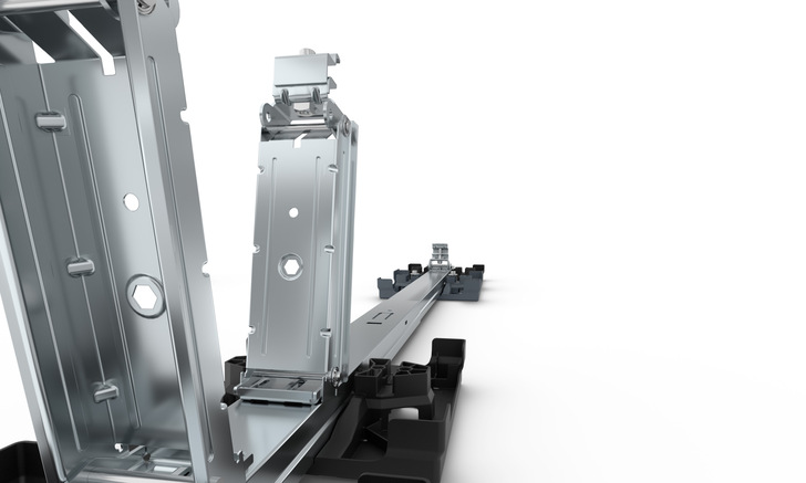 The new system was necessary due to changing module sizes. This is because corner clamping is no longer possible with these. Therefore, the new system was designed for quarter-point clamping. However, this also means that two base rails are required per module, unlike with corner clamping, where two modules could be mounted next to each other on one support.