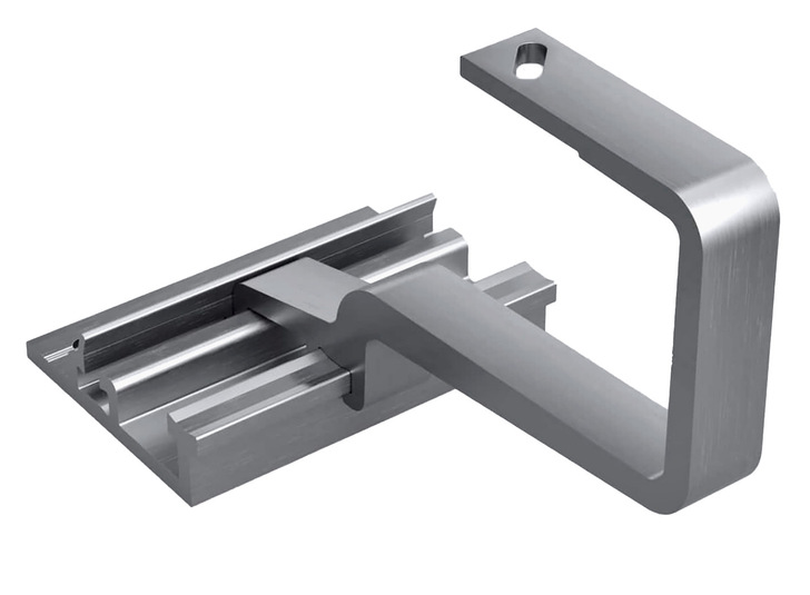 The Tri-Stand Basic is laterally adjustable. It is pushed onto a base plate that is attached to the rafter. Even the base plate gives the craftsman flexibility. This is because it is equipped with a total of twelve holes so that the base plate can be screwed to the centre of the rafter. As the bracket of the hook is then pushed into a channel that extends across the entire width of the base plate, the tradesman can position the hook precisely under the corrugated valley of the roof tile. The upper end of the bracket is equipped with a diagonal slot so that the installer also has some flexibility here to adjust the mounting rail.