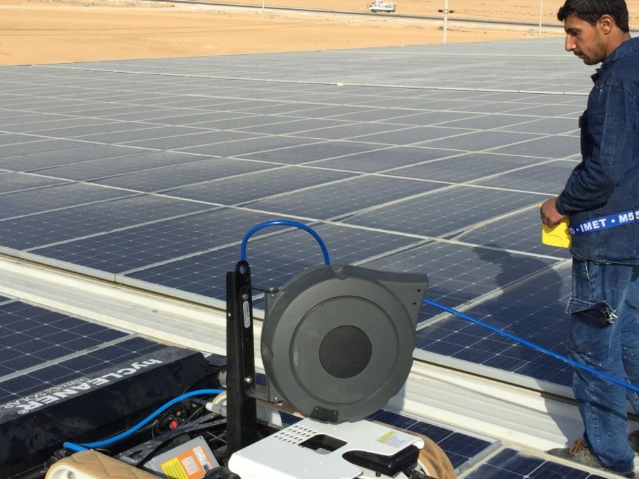 In their search for a suitable cleaning solution, the company came across the semi-automated cleaning system Hycleaner Black Solar, produced by Gronau-based TG Hylift GmbH. At the Intersolar in May 2017, Mohammad Smadi, Director for Research and Development for the Jordan-based business group was able to get a first impression of the cleaning machine. He sealed the deal and just a short time later was able to start using the system in Jordan.