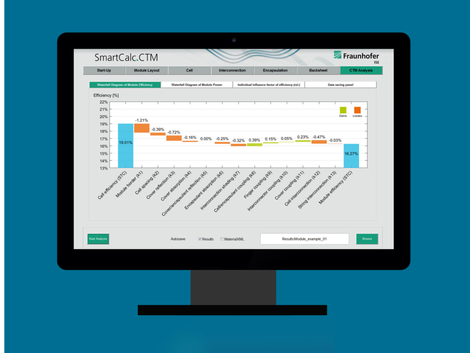 Research and industry invest lots of know-how in improving solar cell efficiency. In order that PV modules benefit from the advances in cell efficiency, the cell-to-module integration process must be performed reliably with low losses. With this in mind, the photovoltaic module group at Fraunhofer ISE developed the software SmartCalc.CTM, which enables manufacturers of PV modules and materials to optimize the assembly and material combination in a PV module, before fabricating a prototype.