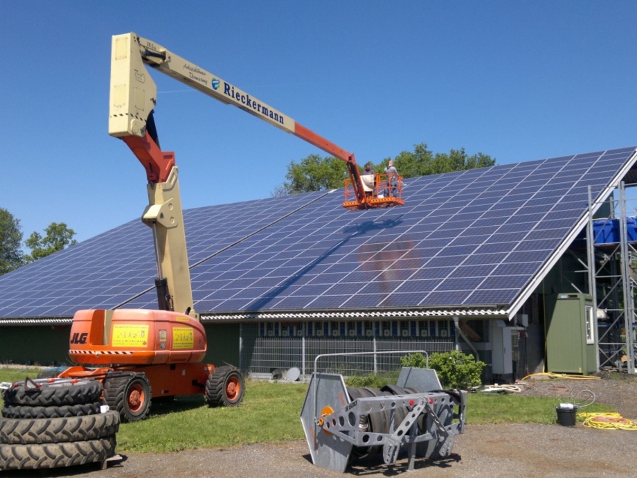But if there is a saw mill or a cowshed in the vicinity, it is possible that substantial amounts of dirt accumulate on the panels. This can come from fine dust (saw mill), which when it rains combines with the rainwater to become a slimy, sticky goo.