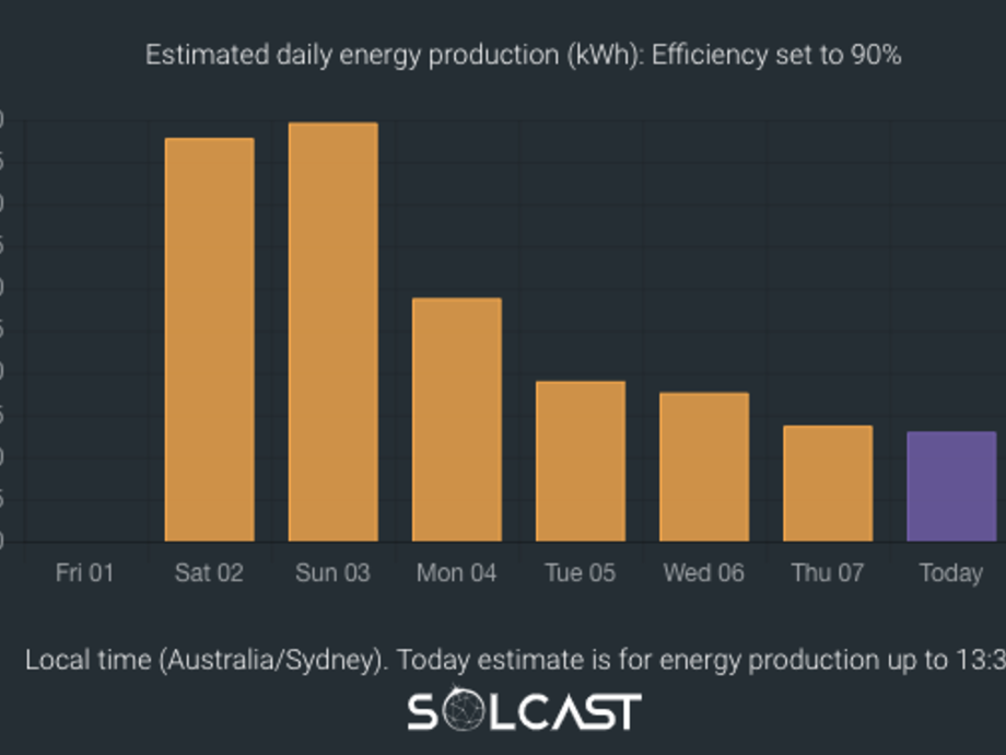 Through its global network of five weather satellites, Solcast tracks and predicts the locations and thickness of cloud cover around the world. Using their own in-house PV power modelling software, they produce solar energy generation estimates based on the past week of cloud observations. The PV performance tool, which can be used free of charge, only requires very basic information on the solar installation, i.e. location, capacity and orientation of the PV array.