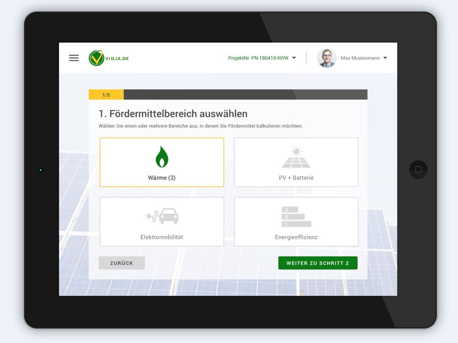 With VIDJA’s software partners, the company is developing a state-of-the-art application that calculates the exact Euro sum of energy efficiency support available for a specific project. The easy-to-use app makes the process of identifying the relevant programs simple. The software compares the data input for a project like location, technologies, investment budget with the funding programs in the database and provides the exact sum of funding amount the customers can expect. This goes a long way in lowering psychological barriers associated with energy efficiency measures.