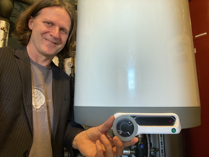 The technical solution is a decentralised hot water boiler with two AC heating rods. The tenant can operate the first heating rod with an output of two kilowatts himself: He can set the desired temperature on the thermostat. He has no access to the second heating rod, which also has an output of two kilowatts, because this is reserved for solar power use.