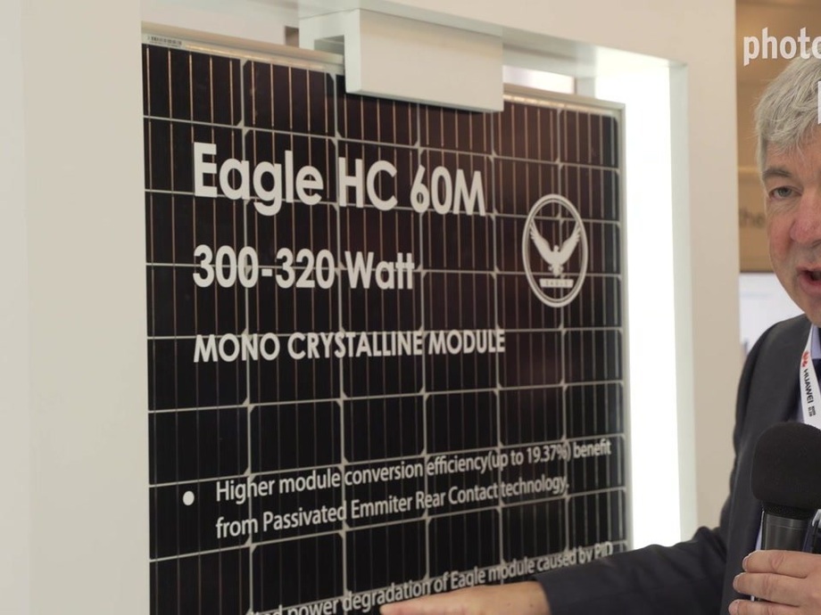 The half-cell panel Eagle HC 60 M is another innovation from Jinko. It is available with poly, mono or mono-PERC cells, with the mono version generating 300 to 230 watts. In addition to the reduced resistance inherent in the half-cell technology that brings increased output, this product has the cells spaced more widely and a white back sheet. That allows the reflection of unabsorbed light back onto the cell, which in turn generates a higher yield from the panel. The panel has three connector sockets on its rear side, and shorter cables are supposed to further reduce losses due to resistance. If required, the cables are also available in the normal length.