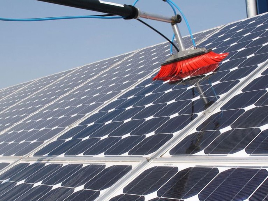 Depending on the location and the neighborhood, the front glasses of the solar modules have to be cleaned - sometimes only once in several years, sometimes every spring, sometimes every few weeks, or never. This depends on the extent to which the contamination reduces the yield.