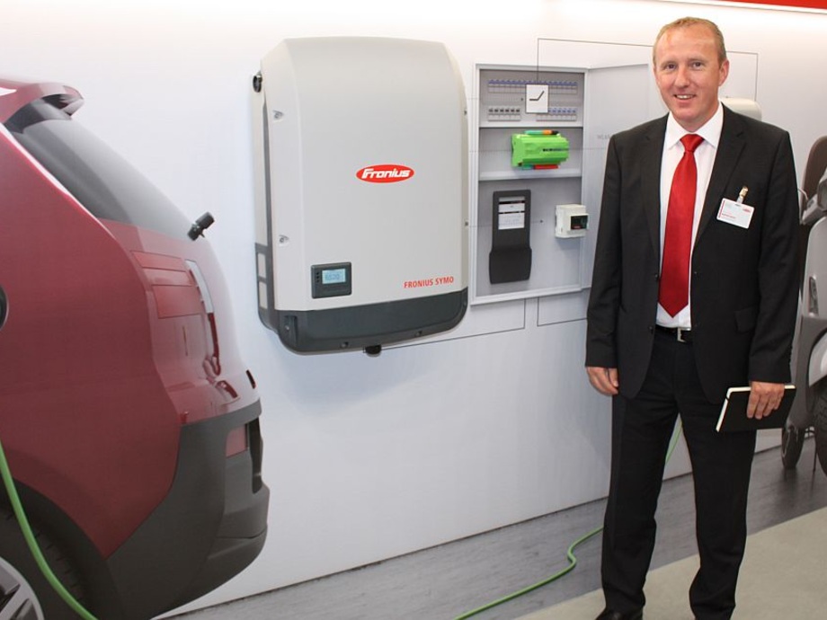 In Munich, Fronius presented a number of new ideas for integrating heat and electro mobility, i.e. integrated energy: “Our Ohmpilot will start shipping this summer,” Martin Hackl promises. “We have already received a lot of orders for this unit. It is simple to connect to the inverter and can control any electric heat source up to nine kilowatts.” Via a heating cartridge, the Ohmpilot diverts any surplus solar power into producing hot water, thus creating a connection between electricity and heating. The heating element’s output is modulated according to the amount of electricity supplied by the roof.
