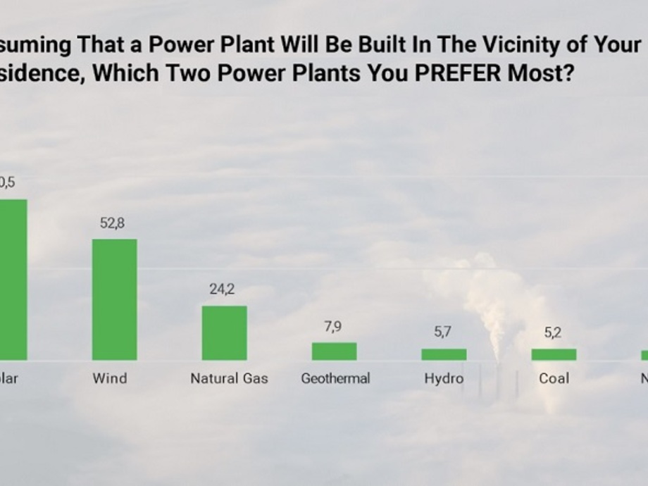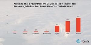 Which power plants they would oppose most was also asked. Only 1.6% and 2.1% declared opposition to solar and wind respectively, while 68.2% of them said nuclear and 53.1% of them declared coal.