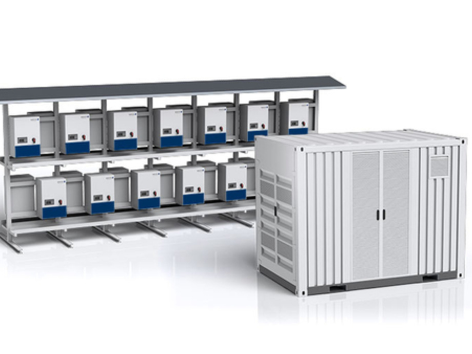 The CPSS from Kaco consists of the following components: blueplanet 50.0 TL3 inverters, optional inverter mounting rack, blueplanet Mini-Argus 50.0 DC combiners and pre-assembled 12 or 20 foot blueblock container-cabin with low-voltage AC distribution board, medium-voltage transformer and switch-gear.