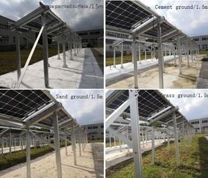 The field installation of different surface is as shown in Figure 2. To test the accuracy of the irradiance, an irradiator is installed on the steel of the front module to record the irradiance of oblique incidence, and two irradiators are installed at the top and bottom of the rear module to record the irradiance reflected from the rear side respectively. Thermocouples are also installed at the middle and edge of the rear module of each array to test the actual operating temperature.