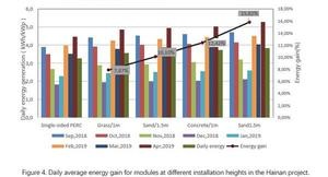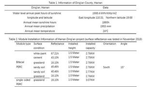 To verify the energy gains of PERC bifacial modules in different environments, LONGi cooperated with the top third-party organizations to build many pilot projects in 2018. Among them, pilot project of TÜV SÜD in Hainan focused on the energy gain of bifacial modules under different surface reflection conditions and verify the effects of the modules with the installing heights of 1.0 m and 1.5 m. The power station has accumulated more than 8 months of data since September 2018. The article will show the power generation of the LONGi bifacial modules based on the data.