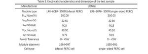 There are two types of modules for this test. The specific parameters are shown in the following table.