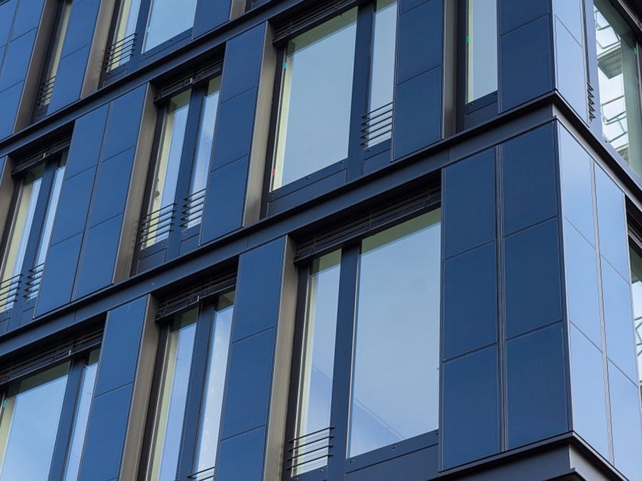 On top of all this, CIGS thin-film modules have aesthetic advantages that benefit facades. Unlike crystalline silicon PV cells, CIGS thin-film modules' cell structure is hardly discernible. This means the modules offer the same leeway as glass to facade designers, including homogeneous surfaces and elegant color choices. Variable module sizes, special shapes and structured surfaces are also available.