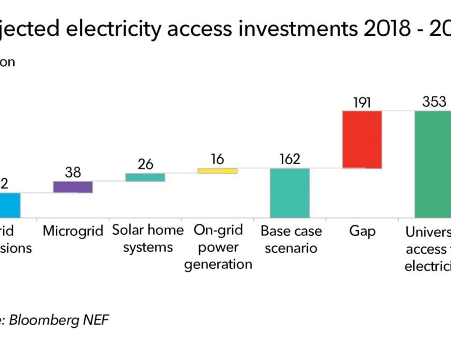 In our base case scenario, some 365 million people would remain unserved by 2030 despite a dramatic increase of microgrids and solar home systems. Reaching universal access and serving everyone with slightly more than just lighting would require spending an additional $191 billion on top of our current base case. The total, some $353 billion, is less than half than of the estimate by the International Energy Agency, which pegged the figure at some $725 billion. The IEA broadly agrees with our view on the crucial role of microgrids and solar home systems, but appears to assume costs well above those we already see in the market.