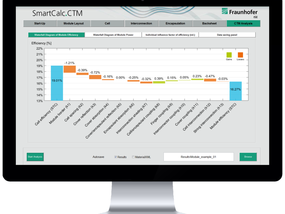 The Software performs detailed analyses of gain and loss factors with precise calculation models. SmartCalc.CTM is a validated tool, reviewed and verified by Fraunhofer ISE Callab PV modules.