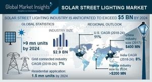 India market is set to witness gains over 8% by 2024. Government initiatives to promote non-conventional energy utilization along with investments toward improvement in street lighting infrastructure will drive the business growth across the country. As per the International Energy Agency (IEA) in 2016, around 200 million people in India lacked electricity access. Solar street lights offer a sustainable solution to meet the rising electricity demand and support government plans to integrate renewable energy resources. (HCN)