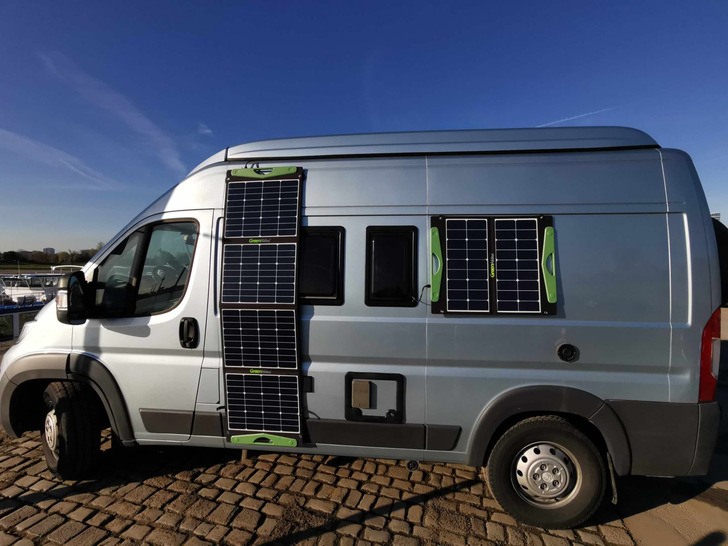 Online retailer Greenakku offers a wide range of solar bags with outputs from 60 to 200 watts. Users can choose between monocrystalline or Sunpower cells. Difficult lighting conditions or partial shading have little effect on the solar foils.