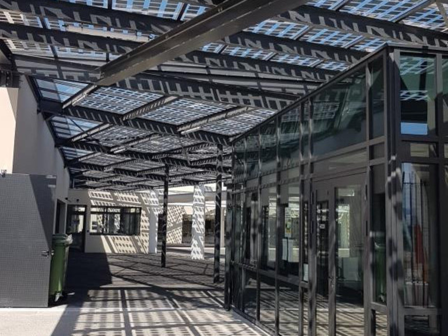 In the southern French city of Aix-en-Province, a high school was equipped with a new sun protection system. However, this not only provides shade in the inner courtyard of the school complex. Rather, it also provides part of the power supply. Instead of using normal, semi-transparent glass, as is usual with sun protection systems of this kind, the canopy over the inner courtyard of the high school consists entirely of solar modules.