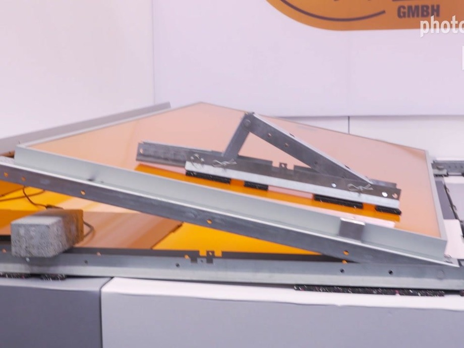 TRITON O/W und Süd of T.Werk is a pre-assembled, penetration-free flat roof mounting system with the fastest installation time on the market. CHRONOS Click is a quickly mountable mounting system for all types of pitched roofs and for special solutions. CHRONOS Trapez is a flexible, very inexpensive short rail system for trapezoidal roof tops. SILENOS is an outdoor PV mounting system, quick and easy installation even on difficult surfaces. (HCN)
