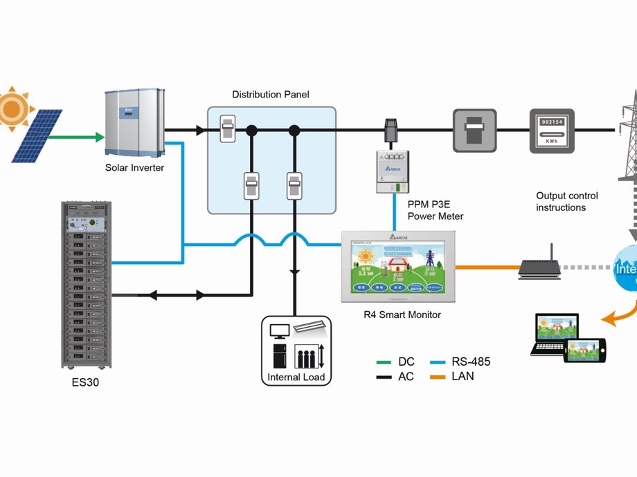 Commercial photovoltaic systems use Delta ES30 battery storage systems for peak-shaving and peak-shifting to limit feed-in power to the grid and maximize the portion of their PV power generation that they consume themselves to lower electricity costs. ES30 systems also stabilize grid voltage and can be installed in parallel for modular expansion. With the integration of the P3E power meter the user can monitor energy flow and send the data back to the R4 smart monitor, an intelligent energy management system. (nhp)
