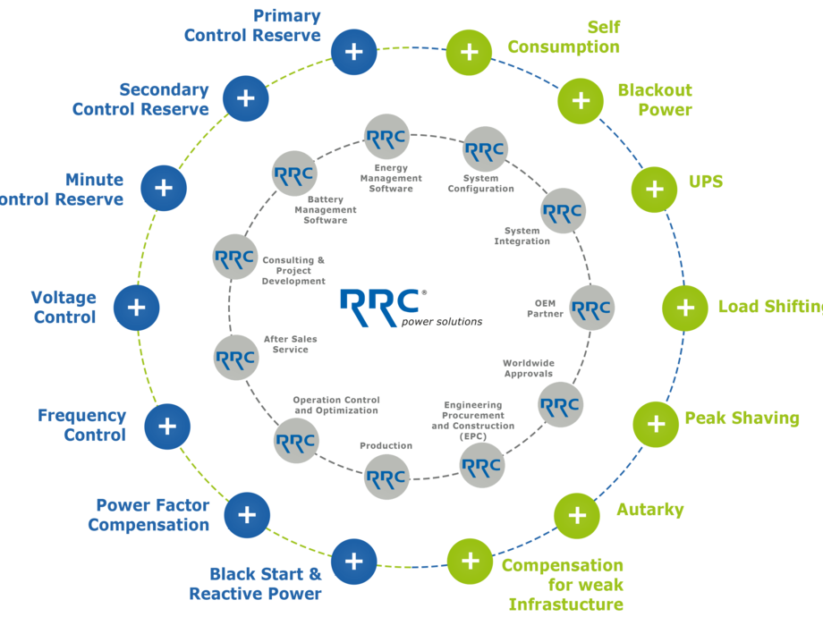 RRC Power Solutions is developing smart batteries, charging and energy storage systems. The product range extends from residential to utility-scale energy storage solutions with capacities of several Megawatt-hours for applications in the industrial, commercial, energy- and private sector.