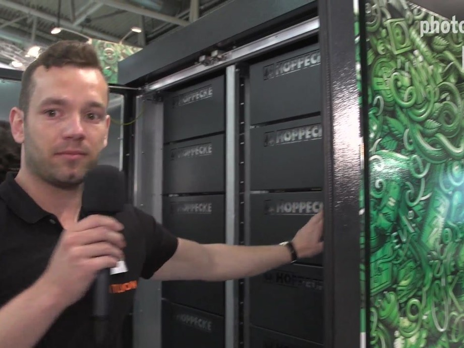 The three-phase AC storage with NMC batteries is delivered ready for connection. It can store 68.5 kilowatt hours and produces 30 kilowatts.Hoppecke also exhibited the Systemizer Scalecube hybrid memory. It combines cells made of lead and lithium and has a modular structure. Not only is the storage capacity scalable, but also the storage technologies. The container solution avoids high construction costs, provides flexibility and offers a suitable security concept.