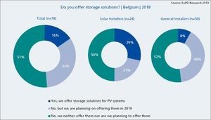 The examples of Germany and Italy show that a strong development of the electrical energy storage sector has taken place over the last years in Europe. Meanwhile, the installers are so experienced in the field of energy storage that the largest share of them carries this technology in their portfolios. Belgian installers, though, are not yet focussed on energy storage systems. Only 16% of the participants of the "Global PV InstallerMonitor 2018/2019 Belgium" offer storage solutions to their customers. A further 33% want to include energy storage in their portfolio in 2019. The installers, who will not offer battery storage, claim high prices as the main obstacle. They also mention a general lack of demand for energy storage systems.