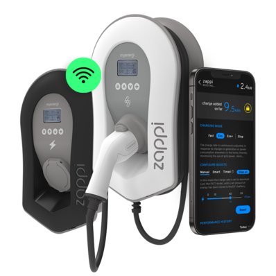 The Zappi Wallbox from Myenergi combines dynamic load management and solar surplus charging in one device.