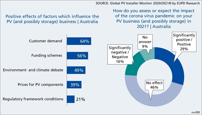 EUPD Research recently published the results of the 13th edition of the Global PV InstallerMonitor 2020/2021 for the Australian market, and the demand-side is very healthy.