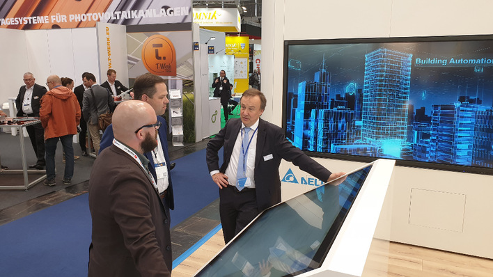 Delta Electronics presented the M100A Flex with eight MPP trackers for up to 16 module strings and a wide input voltage range as a highlight at Intersolar.