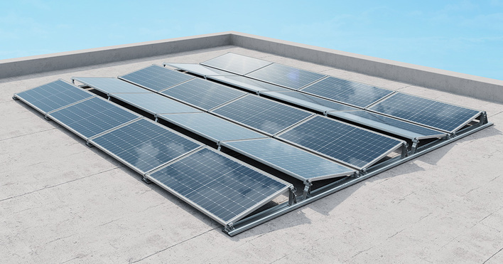 Flat roofs are particularly well suited for the installation of photovoltaic systems. Especially if you want a lot of power on the roof. It is important to use high-quality components, such as those used in the IBC SOLAR flat roof mounting system IBC AeroFix. Best of all: The mounting is carried out without the use of screws or the need for drilling, completely free of roof penetration. The latest development of the system, the IBC AeroFix G3, now has even more advantages to offer.